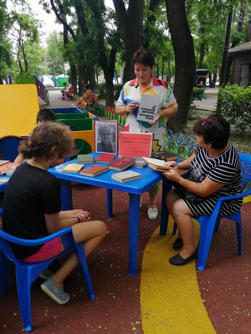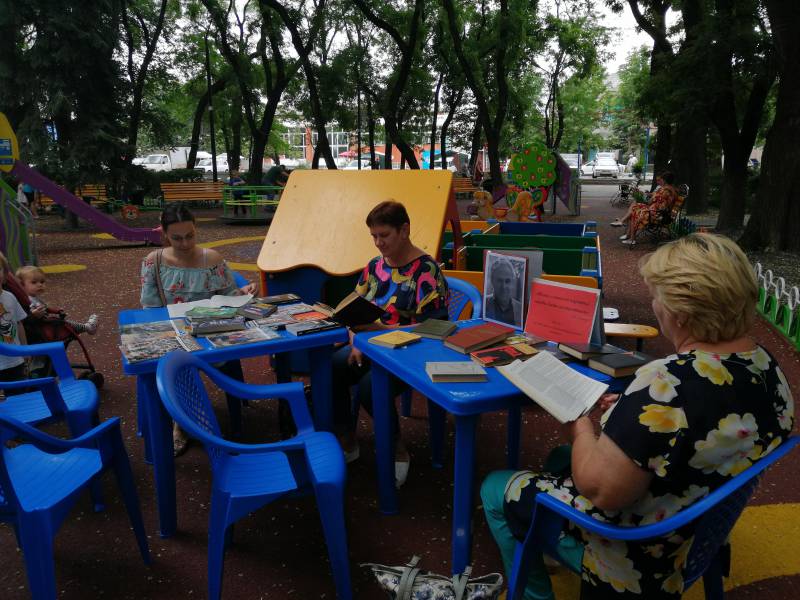 Дата публикации: 24 июля 201924 июля, в рамках реализации проекта «Взгляд из прошлого», направленного на популяризацию научно-популярной книги в произведениях Д.А. Гранина, библиотекари МКУК «ОМЦБ» организовали читальный зал под открытым небом. В котором была представлена выставка-панорама «Человек, культура, наука в новом тысячелетии».