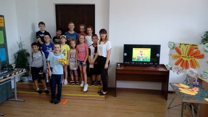 | 26 июля для участников летнего лагеря Центра детского творчества в МКУК "Отрадненской межпоселенческой центральной библиотеке" состоялась игровая программа - «В слове «Мы» - сто тысяч «Я»». Дружба – это великая ценность, подарок судьбы. Дружба помогает нам учиться, работать, жить. Она делает нас лучше, добрее, сильнее. Иметь друга – великое благо. Именно такими словами началось «путешествие в страну дружбы», в МКУК «ОМЦБ» для детей посещающих летнюю досуговую площадку центра детского творчества. Библиотекари подготовили увлекательную игровую программу. Ребята с удовольствием участвовали в конкурсах, разгадывали пословицы и поговорки о дружбе и были приятно удивлены сюрпризами , полученными от библиотекарей. В завершении мероприятия ребята вместе с библиотекарем вывели формулу дружбы и с хорошим настроением посмотрели мультфильм: «День рождения кота Леопольда». | |