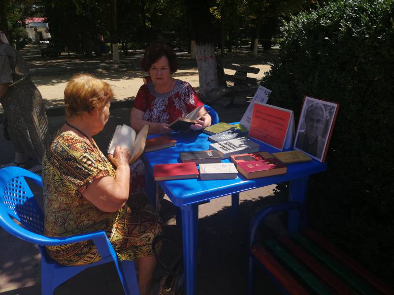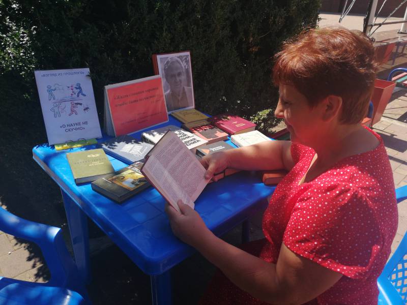 | 09.08.2019 года на центральной площади работниками МКУК "ОМЦБ" была организована выставка-панорама: "О науке не скучно" 09 августа работниками центральной библиотеки на площади выпускников был организован «читальный зал под открытым небом», где была продемонстрирована выставка – панорама: «О науке не скучно», из цикла выставок-панорам: «Год науки шагает по стране», в рамках проекта: «Взгляд из прошлого». Библиотекари сделали подборку произведений Даниила Гранина и ознакомили с ними всех интересующихся прохожих. Те, чьё внимание удалось привлечь, останавливались, чтобы поучаствовать в дискуссии, и с интересом изучали предоставленную литературу. Некоторые из участников этого мероприятия, заинтересовались книгами: «Искатель», «Наш комбат» и взяли данные произведения с собой. | |