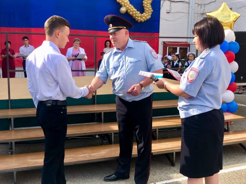 | На торжественной линейке, посвященной началу учебного года, школьникам вручили первый в их жизни важный документ. Во время празднования Дня знаний в МБОУ СОШ №1 имени Колесника А.С., состоялась церемония вручения паспортов юным отрадненцам, достигшим 14-летнего возраста. Главный документ гражданина Российской Федерации школьникам вручили начальник Отдела МВД России по Отрадненскому району полковник полиции Виктор Рассохин и начальник отделения по вопросам миграции капитан полиции Наталья Ковальчук. Полицейские поздравили ребят с получением главного документа, а также с праздником - Днем знаний, пожелали ребятам успехов в учебе и творческих побед и вручили каждому ребенку Конституцию Российской Федерации. | |