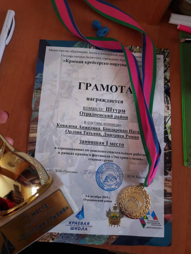 | 6 октября 2019 года в Отрадненском районе на базе туристического лагеря «Тополек» состоялся краевой фестиваль «Экстрим Стихия». Фестиваль собрал около 100 участников. Команды детских и старших групп прибыли из таких городов и районов как Краснодар, Армавир, Новокубанск, Гулькевичский и Павловский районы. В состав нашей команды вошли Наталья Бондаренко, Роман Дмитриев и молодые депутаты Анжелика Ковалева и Татьяна Орлова. Ребята достойно выполнили все задания и по итогам соревнований заняли 1 место по поисково-спасательным работам в своей категории (старшая группа). Поздравляем наших победителей! | |