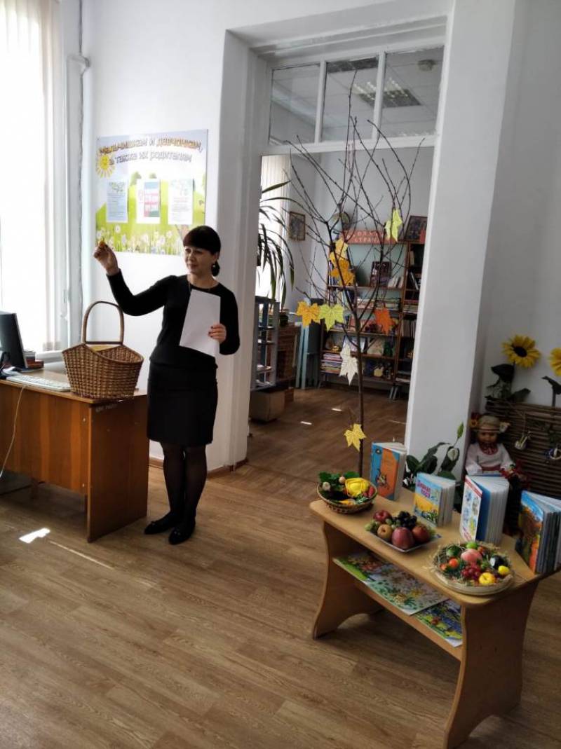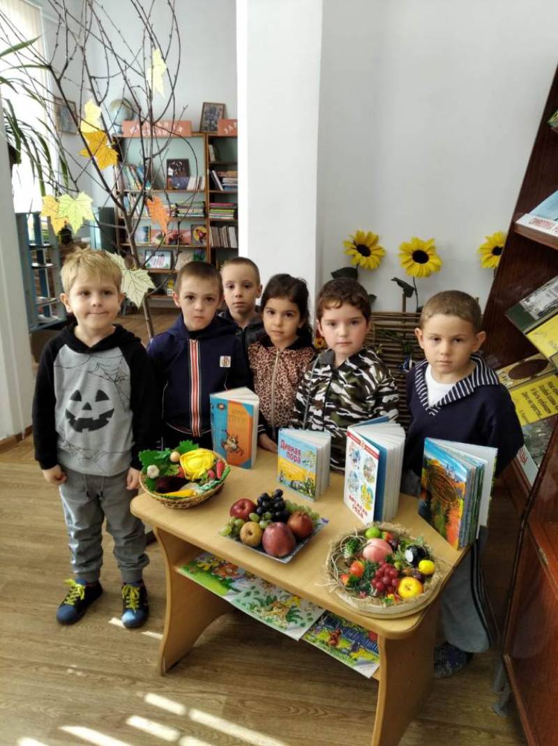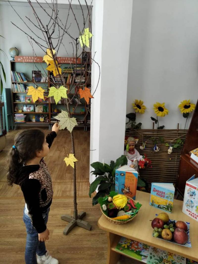 | 8 октября в районной детской библиотеке, для воспитанников МБДОУ № 5 ст. Отрадной, прошел познавательный час - «Осени яркие краски», посвящённый самому красивому времени года. Библиотекарь рассказала детям о том, что осень – необыкновенно яркое и урожайное время года, поговорили о приметах осени, вспомнили пословицы и поговорки, разгадали загадки. Дети читали стихи русских поэтов, с удовольствием участвовали в подготовленных для них конкурсах: «Встречаем осень», «Осенний листопад», «Весёлые дворники». По завершению мероприятия ребят угостили вкусными наливными яблочками. | |
