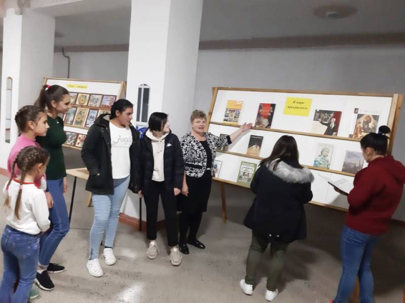 Дата публикации: 5 ноября 2019 ![]() ![]() ![]() ![]() ![]() 3 ноября 2019 года библиотеки МО Отрадненский район в очередной раз приняли участие во Всероссийской акции «Ночь искусств», под девизом - «Искусство объединяет». В районной детской библиотеке в период с 01 по 03 ноября экспонировалась выставка инсталляция - «Театр волшебная страна». В Урупской сельской библиотеке состоялся мастер класс по плетению из бумажной лозы - «Красота живет повсюду». 3 ноября работники Отрадненской межпоселенческой центральной библиотеки подготовили и провели PR акцию «Читать модно» направленную на популяризацию чтения. Участникам акции было предложено угадать название книги, зашифрованное смайликами. Самые активные участники акции получили дипломы и сувениры на память. Ребята уходили домой с хорошим настроением и зарядом энергии. «Театр – книга - библиотека» - арт-встреча началась в Отрадненской межпоселенческой центральной библиотеке в 19.00, на мероприятие присутствовали ученики 8-го класса МАОУСОШ № 9. Для ребят была подготовлена творческая площадка, на которой каждый желающий смог прочесть театральный монолог Константина или Маши из Чеховской «Чайки» по ролям, с различными эмоциями, с завязанными глазами. Дети с удовольствием принимали участие в данном мероприятие. Еще библиотекари подготовили мультимедийную презентацию с помощью, которой присутствующие смогли погрузиться в удивительный мир театра. Побывали в Азии в театре теней, в Санкт-Петербурге в экспериментальном театре дождей, в Австрии на сцене под открытым небом, которая расположена на озере Констанц, прямо на воде. Еще одна творческая площадка в читальном зале библиотеки была посвящена художественному искусству. Преподаватель школы искусств, станицы Спокойной Кулова Г.Н. организовала для всех желающих сеанс арт-терапии и мастер-класс по портретной живописи. Так же в холле РДК экспонировалась выставка инсталляция о театрах мира. Такие встречи помогают раскрыть творческие способности, дают возможность проявить свои таланты. «Театр в нашей жизни» - кинолекторий состоялся в Петровском сельском Доме культуры, мероприятие было организованно совместно библиотекарем и клубными работниками. Библиотекарь провела беседу о том, какую роль искусство играет в нашей жизни, какое воздействие оказывает на человека, о том, что искусство кино зародилось именно на основе театра. Посмотрели видеоролики о первых театрах, познакомились с литературой, представленной на одноименной книжной выставке. Работники Красногвардейской и Пискуновской сельских библиотек проводили мероприятия совместно, посвящено оно было Дню народного единства - «Мы непобедимы, если мы едины» - литературно-исторический час. «Сказочный мир театра» - познавательный час состоялся в Рудьевской с/б совместно с библиотекарем Изобильненской с/б. Присутствующие окунулись в волшебный мир театра, познакомились с историей возникновения театра, узнали о его видах и жанрах. Известно, что один из главных элементов театра – игра, поэтому в этот день в библиотеке разыгрывали различные сценки, миниатюры, игры. «Пусть всем правит муза!» - час общения прошел в этот вечер в Удобненской сельской библиотеке. Еще в Удобненской библиотеке был оформлен тематический фотосалон - «Мир искусства дарит мысли, дарит чувства». В Подгорненской с/б мероприят