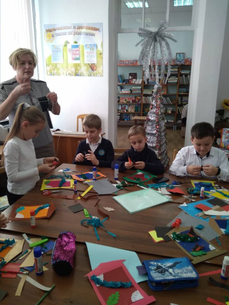 | 19 декабря на очередном заседании клуба «Мастерская чудес» ученики второго класса МБОУСОШ № 1 имени Колесника А.С. сделали новогоднее панно. На мероприятии дети с помощью библиотекарей сделали поделку- панно с зимними мотивами «Снегири» из цветного гофрированного картона и цветной бумаги. Птицы на панно выполнены в технике оригами из цветной бумаги. Дети проявили фантазию в оформлении своих подарков-поделок: украсили их яркими блестящими бусами. Во время творческого процесса библиотекарь рассказала ребятам о традициях новогодних праздников, познакомила юных читателей с книгами, посвященным различным техникам рукоделия. Во время мастер-класса в библиотеке царила добрая творческая атмосфера. В завершение дети с удовольствием фотографировались со своими поделками. | |