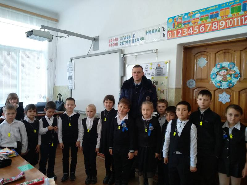 В Отрадненском районе Госавтоинспекторы и юные инспектора дорожного движения рассказали школьникам Правила дорожного движения перед предстоящими зимн |