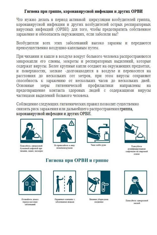 Гигиена при гриппе, коронавирусной инфекции и других ОРВИ |