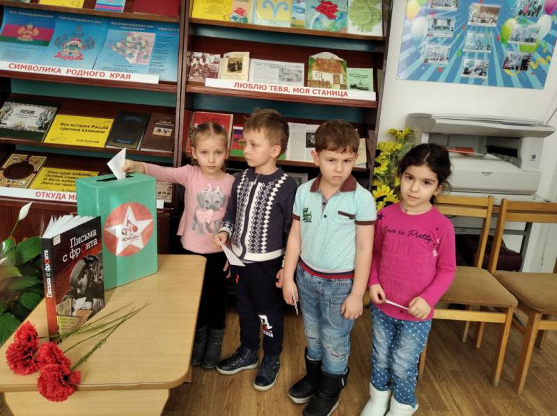 | 19.02.2020 в рамках реализации плана мероприятий, посвященных Году Памяти и Славы библиотекари районной детской библиотеки подготовили и провели тематический час «День защитника Отечества». Библиотекарь приготовила для детей интересную презентацию, посвященную дню защитника Отечества, из которой воспитанники более подробно узнали о том, кто такие защитники отечества, как называли их в старину, о разных видах войск, о военных профессиях. Во время просмотра презентации дети активно отвечали на вопросы, играли в игры, проявляли ловкость и мужество. Завершилось мероприятие участием в литературно – публицистическом патриотическом проекте музейных и библиотечных учреждений Краснодарского края «Солдатский треугольник», ребятам было рассказано об истории солдатского письма-треугольника, о значении писем не только для солдат, но и для родных, которые их ждали. Дошкольники оформили письма рисунками и пожеланиями, а затем опустили их в почтовый ящик в подарок ветеранам Великой Отечественной войны, труженикам тыла, пожилым людям. | |