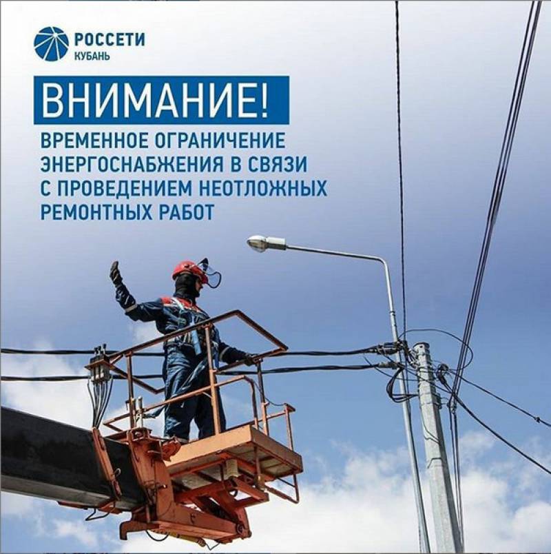 | Главная » Новости » Отключение электроэнергии в ст. Отрадная |