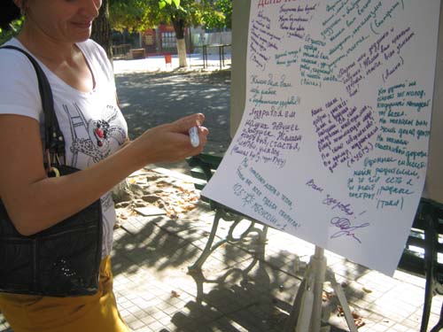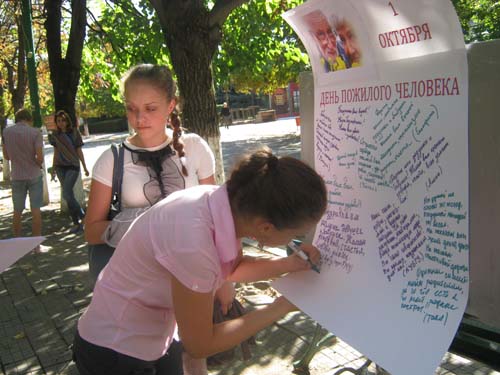 1 октября 2012 года Отрадненская межпоселенческая центральная библиотека провела акцию ко Дню пожилого человека «Кто больше скажет добрых слов».Акция проходила и в стенах библиотеки и на оживленной аллеи центрального парка станицы Отрадной. Данная акция - это напоминание всем нам о том, что рядом с нами есть люди пожилого возраста, которым требуются забота, уход и внимание. Читателям библиотеки и жителям станицы было предложено написать поздравления или пожелания в адрес старшего поколения в преддверии международного праздника. В акции приняли участие 30 человек это молодежь и люди среднего возраста. Для пожилых людей было устроено праздничное чаепитие. | |