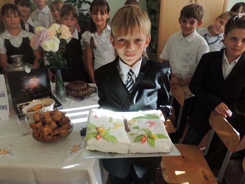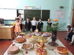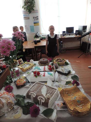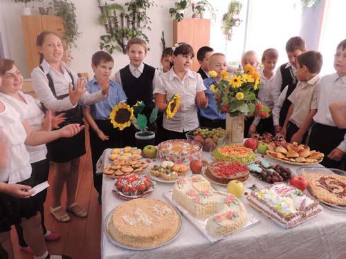 В МБОУ СОШ №11 станицы Спокойной 2 октября 2012 года в рамках краевой акции «Поздравь своего учителя» проведён замечательный праздник. Все учащиеся школы, их родители и педагоги тщательно готовились к конкурсу кулинарных изделий под названием «Подарок учителю своими руками».В каждом классе ребята с мамами испекли торты, пироги, пирожные в виде книг, журналов, дневников. Все экспонаты эстетично оформлены и украшены. Осенние цветы, красивые салфетки, поздравительные открытки привлекали всеобщее внимание. Лучшие изделия были отобраны на станичную выставку ко Дню учителя. После этого ребята побывали у учителей-ветеранов дома и поздравили их с профессиональным праздником. Встречи прошли интересно, ведь ветеранам есть, что рассказать детям. | |