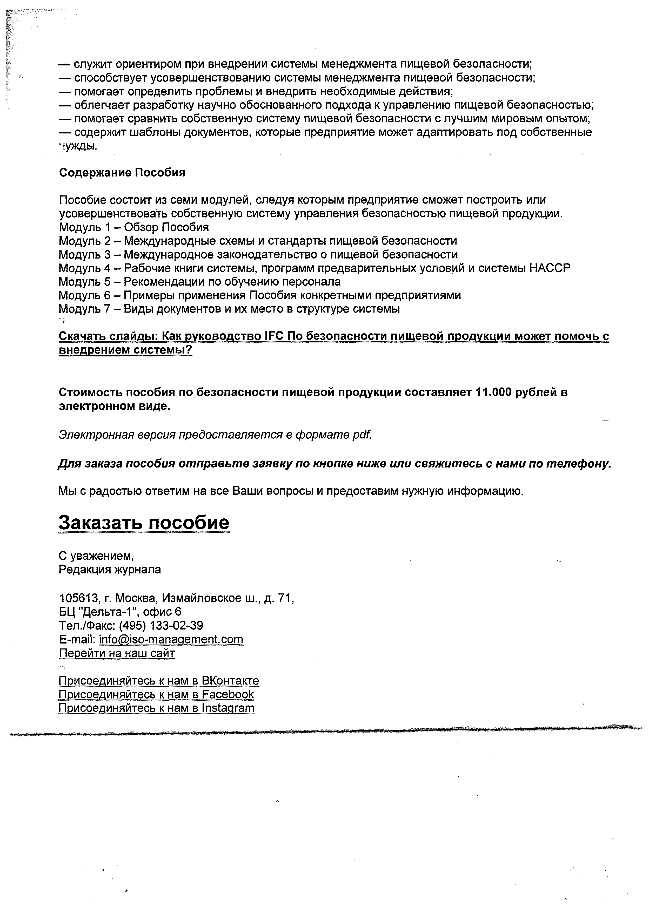 Пособие по безопасности пищевой продукции |