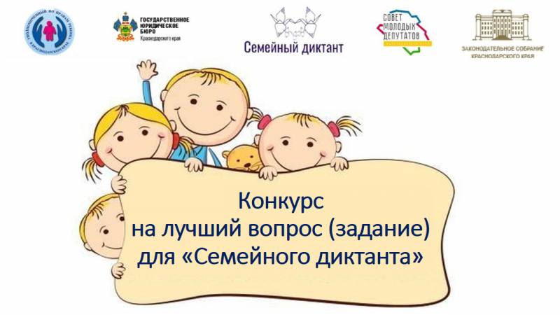 | Предлагаем Вам принять участие в конкурсе на лучший вопрос (задание) для «Семейного диктанта». Условия конкурса очень просты: - Вам от 16 лет; - вопрос (задание) должен быть из сферы семейного права; - вопрос (задание) должен быть составлен без оценочных и двусмысленных слов; - правильный ответ на вопрос (задание) из представленных на выбор должен быть только один; текст вопроса (задания) не должен содержать прямую подсказку на правильный ответ. Для участия необходимо заполнить информацию в данной форме. Ждём Ваших интересных вопросов (заданий) на конкурс с 7 декабря 2020 года по 7 марта 2021 года. Авторы лучших вопросов (заданий) будут награждены дипломами и благодарственными письмами! Напишем «Семейный диктант 2021» вместе! Подробнее. | |