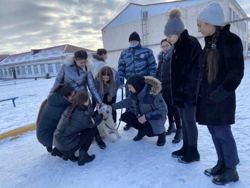 В преддверии Дня российского студенчества в Отрадненском районе стартовала Всероссийская акция «Студенческий десант». В гости к старшеклассникам МБОУ СОШ №16 станицы Отрадной пришли представители Общественного совета, сотрудники по делам несовершеннолетних Отдела МВД России по Отрадненскому району, сотрудники дорожно-патрульной службы полиции, инспекторы- кинологи. Об основных целях, задачах акции «Студенческий десант», рассказал председатель Общественного совета при Отделе МВД России по Отрадненскому району Василий Сопотов. Полицейские довели до школьников информацию профориентационного характера, рассказали о деятельности полиции, о работе дорожно-патрульной службы полиции, отделения по делам несовершеннолетних и кинологической службы. Ответили на все интересующие вопросы школьников. Инспекторы-кинологи рассказали учащимся о работе кинологической службы, о профилях обучения служебно-розыскных собак, продемонстрировали работу со служебно-розыскными собаками по кличке «Герда» и «Сара». В ходе показательных представлений служебные собаки смогли обнаружить спрятанные имитаторы взрывного устройства, наркотических средств. В конце мероприятия школьники поблагодарили полицейских за предоставленную возможность узнать про их специфику работы и пожелали успехов в их нелегком труде. Пресс-служба ОМВД РОссии по Отрадненскому району | |