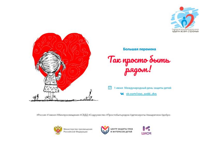 В рамках Акции 1 июня в 10:00 по московскому времени в официальных сообществах Организатора Акции (https://vk.com/voo_svdd_dvs) начнется онлайн-марафон в формате ток-шоу в режиме реального времени. В прямом эфире известные журналисты и спортсмены, звезды российской эстрады, общественные деятели и успешные представители популярных профессий поделятся опытом и секретами успеха, ответят на вопросы воспитанников организаций для детей-сирот и детей, оставшихся без попечения родителей и замещающих семей. Приглашаем всех воспитанников замещающих семей Отрадненского района принять участие в Акции. Приложение № 1; Положение о Всероссийской просветительской акции «Так просто быть рядом», посвященной Международному дню защиты детей. | |