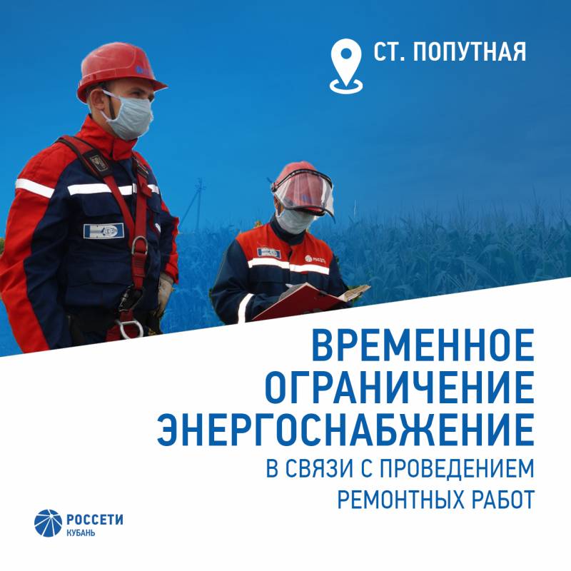 | Главная » Новости » Отключение электроэнергии в ст. Попутная |