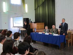 22 ноября 2012 г. в актовом зале Дома творчества ст. Отрадной состоялась встреча выпускников школ района с представителями ФГБОУ ВПО «Кубанский государственный аграрный университет»: деканом факультета механизации С.М.Сидоренко, профессором, заведующим кафедрой тракторов, автомобилей и технической механики В.С. Курасовым.Ребята познакомились с условиями поступления, обучения в Кубанском государственном аграрном университете, узнали о том, какие специальности можно получить в этом учебном заведении. Особый интерес вызвала информация об особенностях студенческой жизни, досуге студентов, о возможности прохождения производственной практики за рубежом, об условиях проживания в студенческом общежитии… Будущие выпускники с удовольствием задавали вопросы декану факультета механизации С.М. Сидоренко. Заместитель руководителя Отрадненского Центра занятости населения С.А. Быкусова подробно рассказала, какие профессии особо востребованы в нашем районе, подчеркнула приоритетность специальностей сельскохозяйственной направленности на рынке труда. Светлана Анатольевна затронула также и вопрос о средней заработной плате по району, особо отметив, что ребята, окончившие вузы по специальностям: юрист, менеджмент, часто остаются невостребованными на рынке труда и вынуждены работать не по своей специальности. Выбор профессии – это один из самых трудных и ответственных шагов в жизни каждого человека, и зачастую будущий выпускник остаётся один на один со своими страхами и сомнениями по поводу правильности своего выбора. Цель проведения мероприятия «Мир профессий»: оказание помощи в дальнейшем определении своего жизненного пути. | |