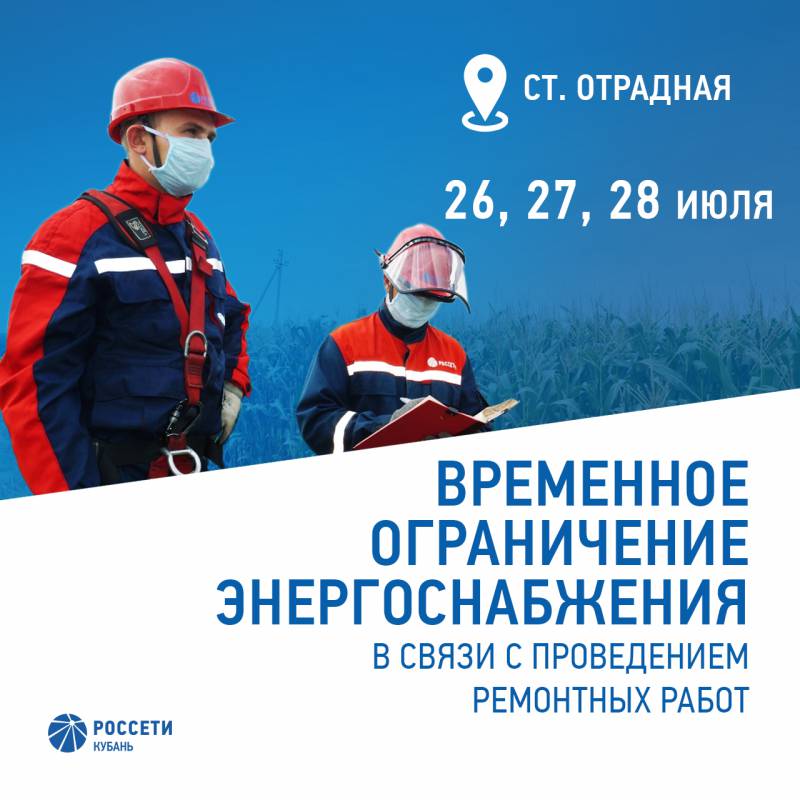 | Главная » Новости » Отключение электроэнергии в ст. Отрадная |