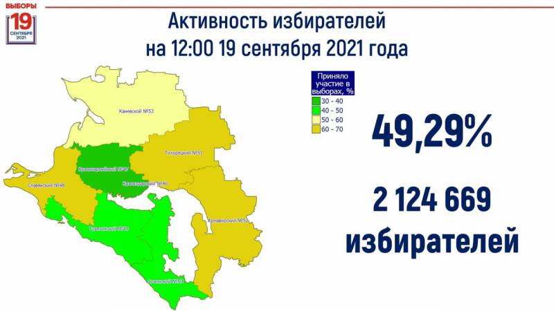 Общая активность избирателей по Краснодарскому краю – 49,29 %. Голосование продлится до 20:00. Приглашаем принять участие в выборах! | |