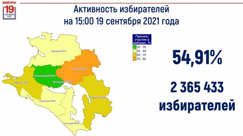 Общая активность избирателей по Краснодарскому краю – 54,91%. Голосование продлится до 20:00. Приглашаем принять участие в выборах! | |