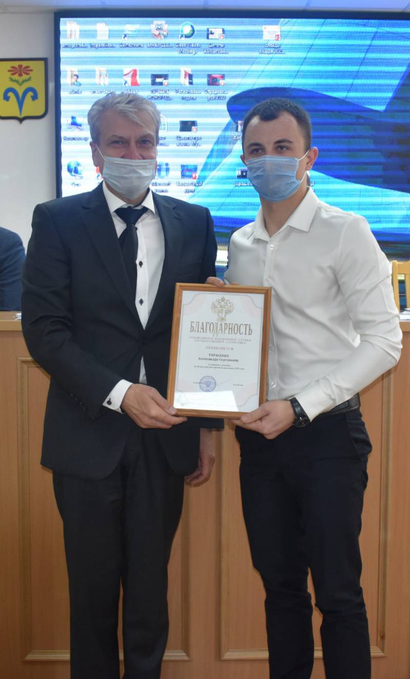 Результат активной работы молодых депутатов налицо – молодой депутат Отрадненского сельского поселения Александр Тарасенко награжден благодарностью Федеральной службы государственной статистики. | |