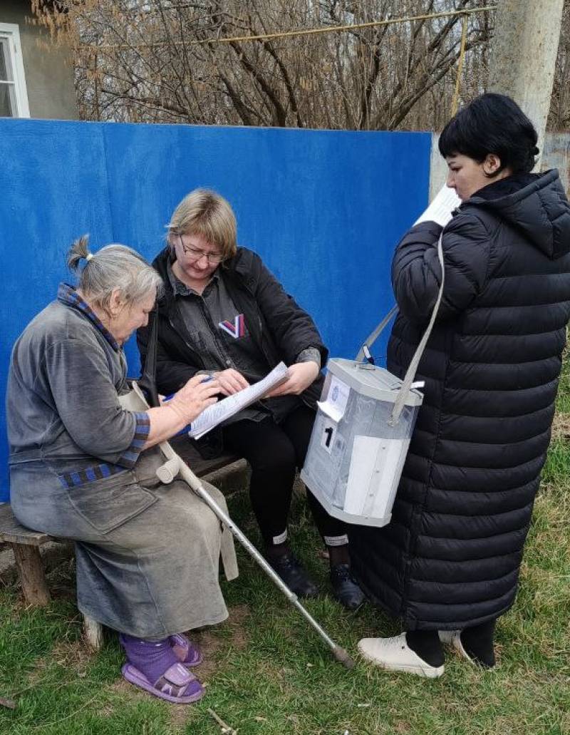 | Голосование продолжается. Члены участковых комиссий продолжают проводить голосование вне помещения для голосования, то есть на дому. В голосовании на дому, на основании поданного избирателем заявления в участковую комиссию лично или через третьих лиц, участвуют избиратели, которые по уважительным причинам не имеют возможности прибыть на свой избирательный участок. Заявление о предоставлении возможности избирателю проголосовать вне помещения для голосования принимаются участковыми комиссиями до 14 часов 17 марта 2024 года. | |