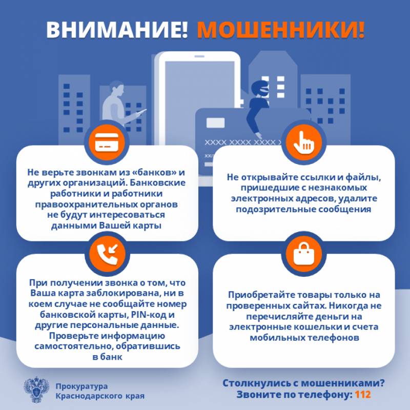 | Главная » Новости » Прокуратура Краснодарского края информирует: внимание мошенники! |