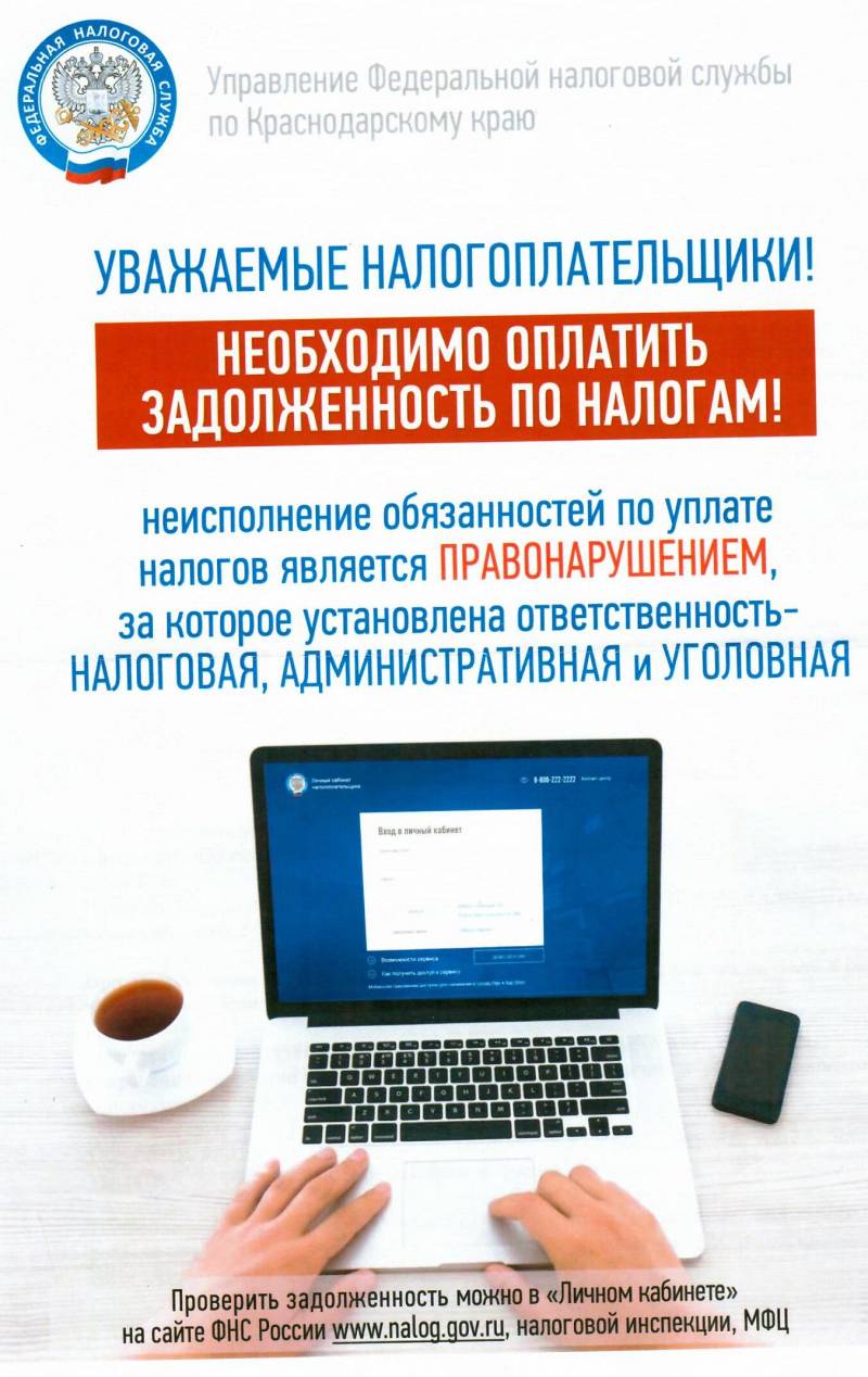 Необходимо оплатить задолженность на налогам!