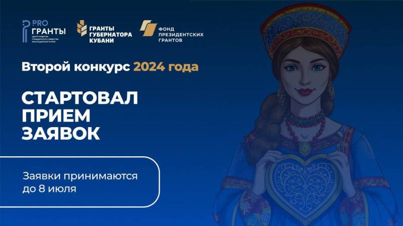 Данный конкурс является общим, нацеленным на решение социально-значимых проблем. Заявки принимаются в электронном виде на сайте "Гранты Губернатора Кубани" (https://grants.krasnodar.ru) Срок окончания приема заявок – 8 июля до 18:00 Материалы о конкурсе и условиях участия в нем – по ссылке: https://clck.ru/3B73zD. С уважением, администрация муниципального образования Отрадненский район! | |