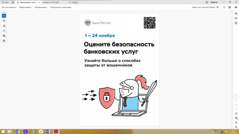 С целью определения уровня доверия к безопасности финансовых услуг и сервисов с 1 по 24 ноября 2024 г. будет организован опрос об удовлетворенности безопасностью банковских услуг (далее – Опрос). Опрос будет проводиться путем заполнения анкеты на интернет-сайте Центрального банка Российской Федерации (Банка России) по ссылке: https://cbr.ru/information_security/anketa. | |