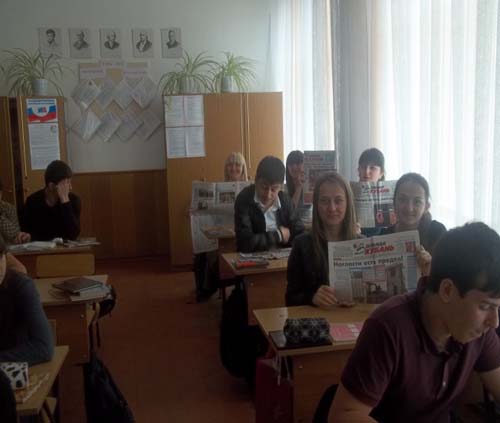 16 апреля в 13.50 для учащихся старших классов МБОУСОШ № 16 проведен час интересных сообщений: «Кубанской прессе — 150».Ребята узнали об истории появления журналистики в нашем крае (30 марта 1863 года вышел первый номер газеты «Кубанские войсковые ведомости»), и жизни региональной прессы на современном этапе: на примере газет «Кубанские новости», «Вольная Кубань», «Сельская жизнь» районная газета и др. Присутствовало 28 чел. | |