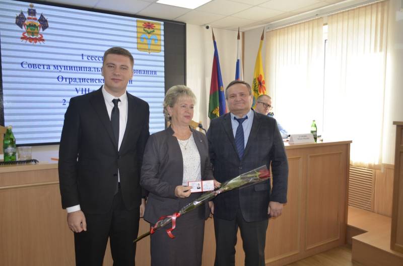 | 2 октября 2025 года состоялась первая сессия Совета депутатов восьмого созыва. Избранные и зарегистрированные депутаты Совета муниципального образования Отрадненский район восьмого созыва приступили к работе. Председатель территориальной избирательной комиссии Отрадненская Сергей Ачкасов открыл первое заседание Совета, поздравил с избранием депутатов и, совместно с заместителем главы МО Отрадненский район Валерием Сафариным были вручены удостоверения депутатов и значки. 14 сентября 2025 года в единый день голосования были избраны 36 депутатов районного Совета по 8 избирательным округам. Решением ТИК Отрадненская выборы признаны состоявшимися и действительными. На сессии депутаты избрали председателя Совета – Иващенко Людмилу Николаевну, заместителя председателя Совета – Уварову Яну Сергеевну, секретаря – Решетову Инну Александровну. | |