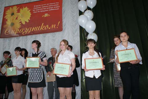 25 апреля состоялось торжественное вручение сертификатов на получение премии главы муниципального образования Отрадненский район учащимся, победителям и призёрам муниципального и регионального этапов Всероссийской олимпиады школьников 2012-2013 учебного года.СОШ № 1 1. ЛИПАТОВА Юлия Андреевна 2. МОРОЗОВ Виктор Михайлович 3. ХОЛОДНАЯ Алина Васильевна 4. ФИДРЯ Юрий Юрьевич 5. ПУСТОВАЛОВА Алина Владимировн 6. ГРИГОРЬЕВА Александра Владимировна 7. КОЖУШКО Мария Олеговна 8. БЛАЖИЕВСКАЯ Анастасия Викторовна 9. АМБАРЯН Кристина Арменовна 10 НЕЧИТАЙЛОВА Анастасия Сергеевна 11 ЛИННИКОВ Александр Олегович СОШ № 9 12 ПОПОВА Яна Алексеевна 13 БУЛЫГИНА Валерия Алексеевна 14 ФЕНЕВА Яна Сергеевна 15 КАЧАЛОВА Елена Дмитриевна 16 РОДЕНКО Ирина Александровна 17 АНУЧИНА Виктория Владимировна 18 КУЧЕРЕНКО Наталья Сергеевна 19 ГАБРИЕЛЯН Юлия Степановна СОШ № 2 20 ЛАПТИЕВА Виолетта Геннадьевна 21 ОВЧАРЕНКО Илона Андреевна 22 СОРОКИНА Наталья Сергеевна 23 БОНДАРЬ Елизавета Васильевна 24 НАТОЧИЕВА Виалетта Алексеевна СОШ № 11 25 КРАВЧЕНКО Алексей Сергеевич СОШ № 16 26 ЭРАНОСЯН Вано Акопович 27 ПИСКОВ Максим Николаевич 28 АБГАРЯН Артем Наслетович 29 ГУРИН Андрей Дмитриевич СОШ № 17 30 ГОНЧАРОВ Никита Анатольевич СОШ № 7 31 БОГУШЕВИЧ Михаил Сергеевич 32 КОДАНЕВА Анастасия Игоревна СОШ № 8 33 ПАНЧЕНКО Александра Сергеевна 34 ДОРОНИН Станислав Сергеевич 35 ЕРИСОВ Николай Николаевич 36 ГРИНЁВ Иван Николаевич 37 ДАВЫДОВА Оксана Анатольевна 38 КАЛМЫКОВ Захар Тимофеевич | |
