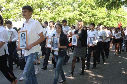 9 мая 2013 года в ст. Отрадной Отрадненского район прошла молодежная патриотическая акция «Парад Победителей», приуроченная к празднованию Дня Великой Победы.В шествии жителей района, ветеранов, казаков к мемориалу «Вечный огонь» молодежь и школьники района гордо пронесли более 500 увеличенных фотографий участников войны, ушедших на фронт и погибших на полях сражений, тех, кто вернулся и восстанавливал разрушенное хозяйство, тех, кто и сегодня еще с нами. Ребята несли фотографии своих дедушек, прадедушек, земляков – отрадненцев, и, казалось, они здесь, вместе с нами, подтверждают своим незримым присутствием, что подвиг бессмертен, если живые о нем не забыли! | |