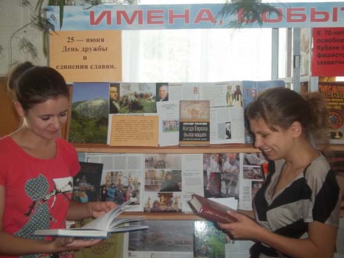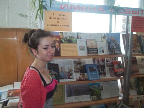 25 июня 2013 года для пользователей Отрадненской меж поселенческой центральной библиотеки экспонировалась говорящая книжная выставка «Мы вместе. Мы едины», посвященная праздничному Дню дружбы и единения славян. Посетило 19 чел.Цель книжной выставки направлена на то, чтобы каждый из нас помнил о необходимости изучать и свято беречь многовековое культурное наследие славянских народов, хранить традиции, ценности, бережно относиться к памятникам старины. Выставка знакомила с документами о создателях славянской письменности, о ее влиянии на русскую культуру, богатую и великую. 1150 лет назад православные просветители, святые равноапостольные Кирилл и Мефодий, создали славянскую азбуку. Она стала основой целого ряда национальных языков, оказала огромное влияние на формирование культур славянских народов и тесное переплетение исторических судеб. Информация о жизни и деятельности Кирилла и Мефодия была представлена на мониторе компьютера. Неподдельный интерес, у посетителей, вызвали представленные на выставке книги по истории российского государства, статьи из периодических изданий о тесном сотрудничестве славянских государств на современном этапе, информация о самобытных культурных традициях и ценностях, обычаях и обрядах. | |