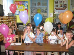 Лето с книгой, дружбой, играми. (игровая орбита) 24. 07. 2013 г., ЦРД «Берег Надежды», 10 человек.Воспитанники центра реабилитации вновь стали гостями районной детской библиотеки. Ребята играли с библиотекарями в веселые игры: игра - хлопалка «Что ждет нас летом?», дети отвечали на каверзные вопросы библиотекаря хлопками если да, молчанием, если нет. Ребята с удовольствием придумали девиз этого лета, приняли участие в творческом упражнении – нарисуй «Чудика». Потом гости библиотеки рассказали о своих любимых летних книгах, библиотекари в свою очередь подготовили для них «книжный фреш» из новинок. Ребята с удовольствием взяли некоторые книжки с собой. А в завершении мероприятия участникам вручили «Билетики в лето» и воздушные шарики, на которых ребята отправились в летнее путешествие. | |