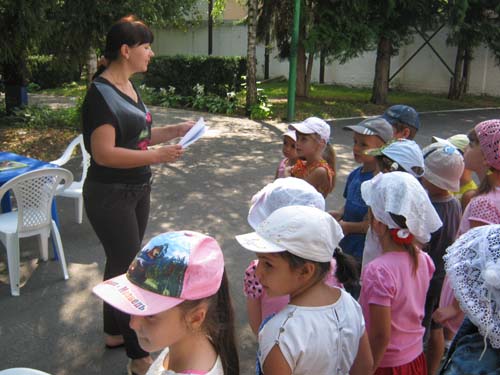 Книжки умные читаем и природу уважаем» - экологически-краеведческая прогулка по родному краю. 14. 08. 2013 г., Детский сад № 2, 22 человека.Работники Районной детской библиотеки организовали прогулку в центральный парк для воспитанников детского сада. На свежем воздухе ребята окунулись в удивительный мир природы, побывали в гостях у животных, заглянули в царство грибов, поиграли в веселые игры и ответили на интересные вопросы библиотекарей. На первой станции в «Царстве растений» дети поиграли в викторину «Узнай растение», приняли участие в конкурсе «Путаница», поиграли в игру «Четвертый лишний». Вторая станция – «Царство животных». Ребята отгадывали «Лесные загадки», поиграли в игру «Веселый Зоопарк». На станции «Царства грибов» юные путешественники узнали, какие грибы ядовитые, а какие нет, как правильно собирать их и как вести себя в лесу. Последней стала «Экологическая» станция, которая подвела итог мероприятия. На ней ребята узнали о науке экологии, о том, что каждый в ответе за свой дом и свое будущее. Природа является неотъемлемой частью нашей жизни, поэтому нам нужно ее беречь. По окончанию ребята посетили читальный зал под открытым небом «У книжек нет каникул», приняли участие в конкурсе рисунков на асфальте, а так же познакомились с книгами и журналами о природе. | |