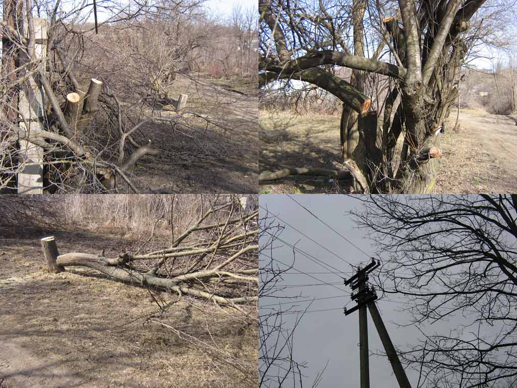 В прошлом году так были очищены улица Красная, Мащенко, Комсомольская и другие улицы (тогда у меня фотика не было чтобы сфоткать ту мусорку которая была на улицах) где срезалась даже сирень (это кустарник который и проводов никак достигнуть не может).