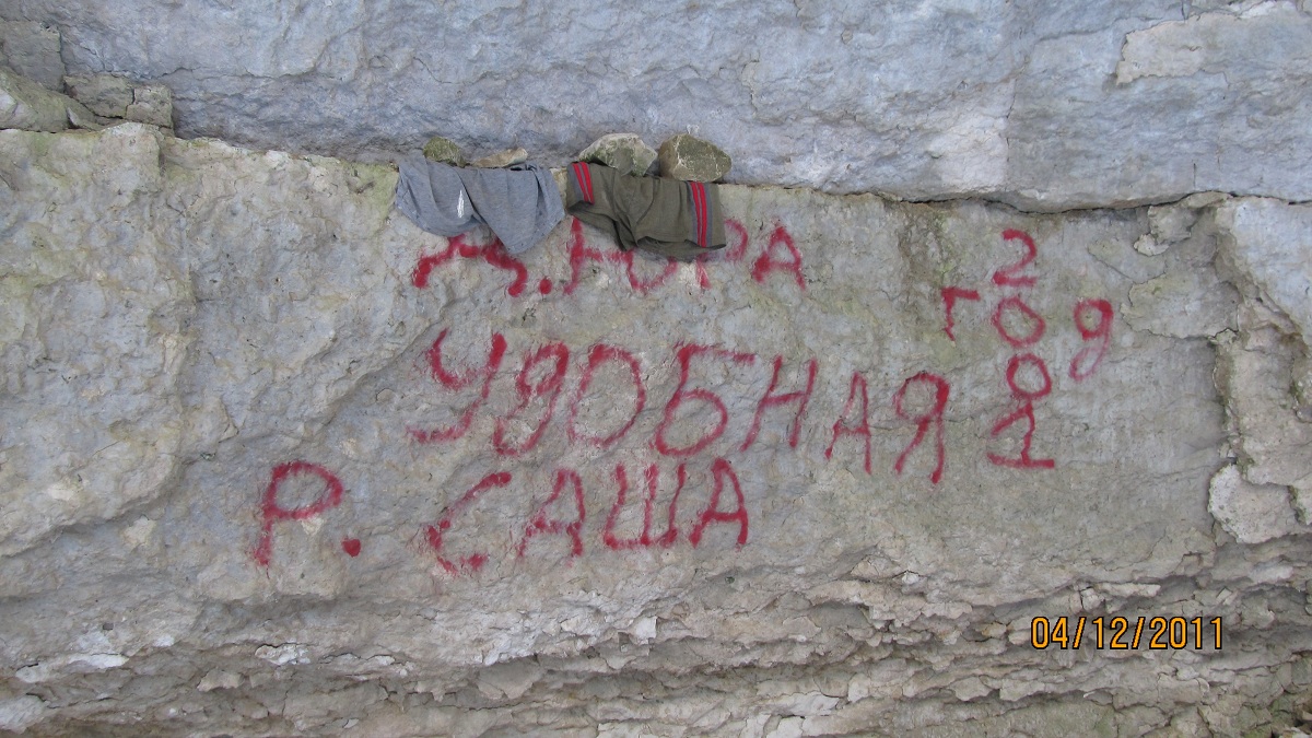 вот так самовыражаются некоторые жители нашего р-на,видимо очень "любящие" свой край.Это мы с дочей увидели в оч.красивом месте(каньон "трубный" в р-не Ильича,к сожалению уже испаганенном нашими земляками.