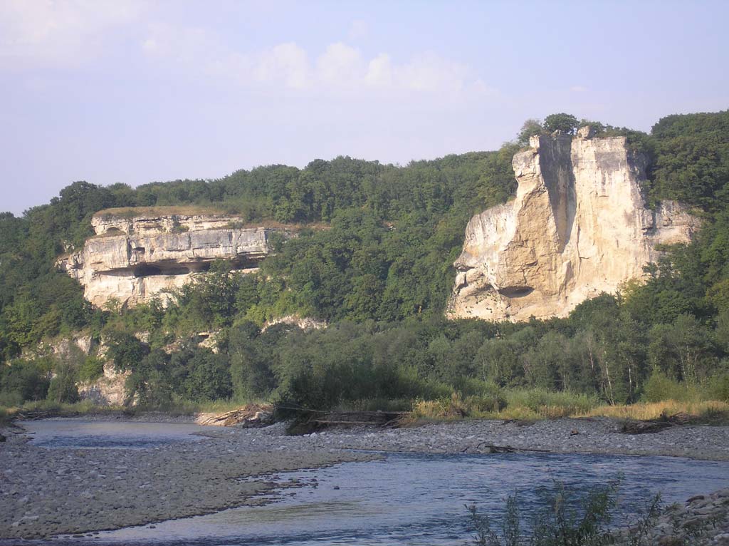 Это тоже моя фотография. Это в Урупе, в районе Ильича. Ближняя скала- обратная сторона скалы Барабан. Дальняя-то что называют "Квартиры".