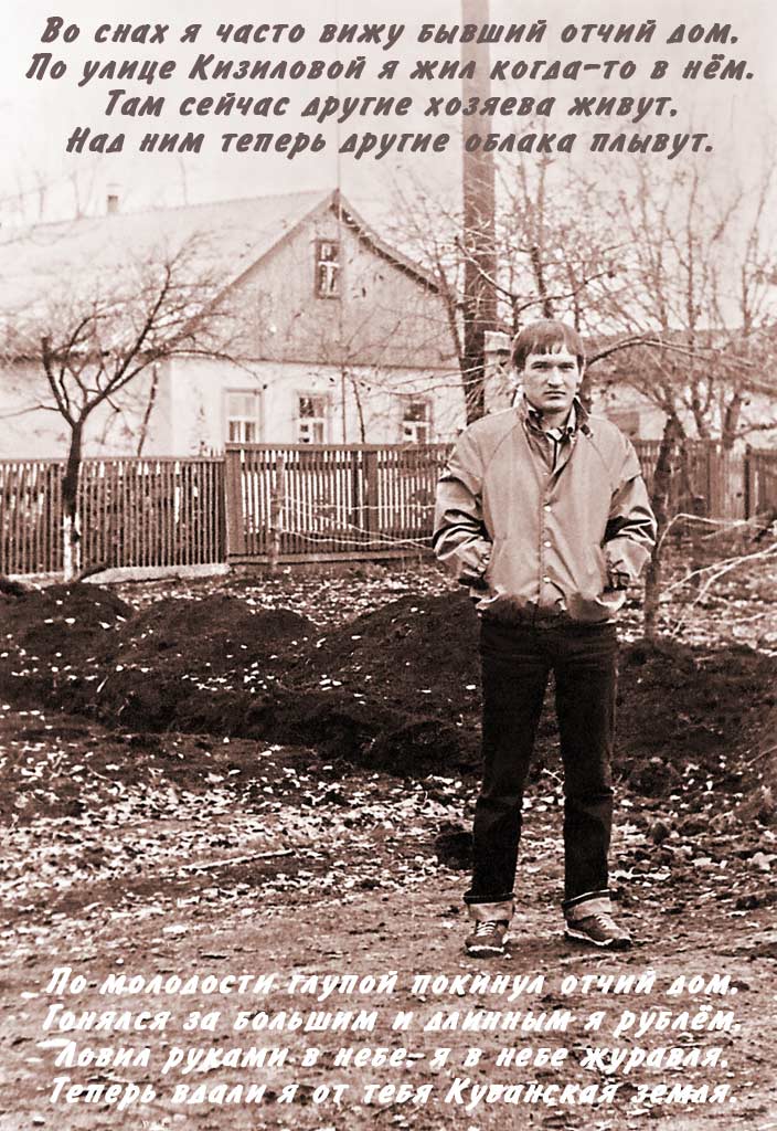 | #6 | | Спасибо многоуважаемый Владимир Викторович! Для меня честь слышать эти Ваши слова в свой адрес. Действительно в душе боль и досада за совершённые мною когда-то в прошлом ошибки, из за которых оказался вдали от Родной земли. Но Отрадная и наше предгорье по прежнему живут в моём сердце, в моей душе. Я неотделимая частица нашей родной станицы, её блудный сын, который мечтает с ней воссоединиться. | | #5 | | Прочтите стихи kombaseros на его фотографии. В них сразу чувствуется боль и досада за то, что теперь он далеко от родной станицы! Вот бы его слова, да в другую ветку... молодец, kombaseros! | | #4 | | Да какие твои годы, Сергей? | | #3 | | Спасибо братцы за понимание!!! | | #2 | | Я тоже.... | | #1 | | Как я тебя, Сергей, понимаю... |